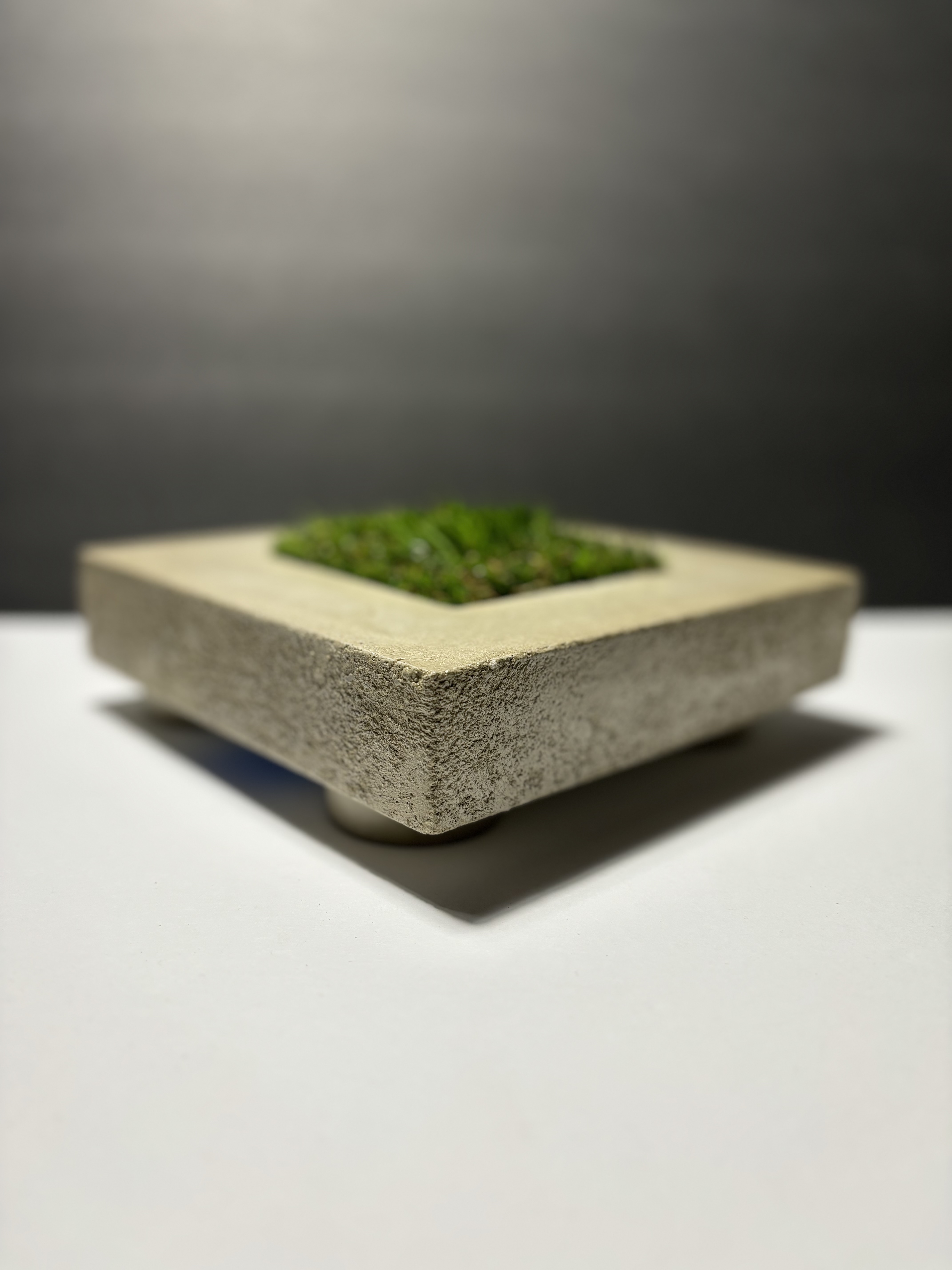 Deluxe Planter 7 3/4in (L) X 7 3/4in (W) X 2in. This concrete planter is a fun fingerboard obstacle perfect size and buttery smooth on all four sides. Heavy and reinforced concrete. Comes with removable faux grass center.